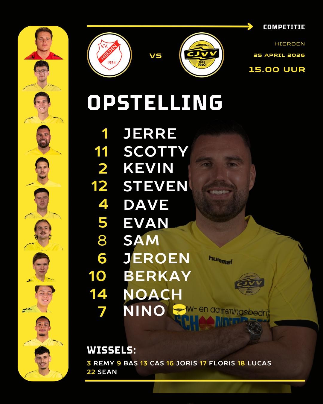 Wie echter denkt dat Hierden door de 1-2 van slag is vergist zich want na de rust zetten zij een tandje bij. Het duurt tot de 52e minuut en dan staat het weer gelijk. Evan Holtewes krijgt de bal ongelukkig op zijn hoofd, zijn tegenstander Rik Vermeij loopt om en tekent vanuit een moeilijke hoek voor de gelijkmaker. Lang duurt dit echter ook weer niet want de geel-zwarten nemen 5 minuten later meteen weer een voorsprong. Middenvelder Berkay Sari aarzelt niet als een bal uit de 16 meter wordt weggekopt, zijn volley is Hierden doelman Niels Doornhof te machtig en CJVV staat weer voor (2-3). CJVV heeft hierna zelfs nog de kans op een 2-4 voorsprong als Noach Ayide aan een mooie solo begint en schuin voor het doel van Hierden uitkomt. Zijn poging wordt onschadelijk gemaakt en zo blijft Hierden in leven. Hiervan maken zij dan ook dankbaar gebruik want in de laatste 10 minuten trekt Hierden de zege over de streep als eerst Rik Vermeij vogeltje vrij bij de tweede paal kan binnenlopen voor de 3-3. Als 3 minuten voor tijd Lucas Seignette zich verslikt in zijn tegenstander speelt Hierden een man-meer situatie feilloos uit en schuift Gerjan van de Ham de 4-3 beheerst binnen. Tussendoor is ook de ingevallen Bas Wobbes nog gevaarlijk maar hij treft geen doel. Een wedstrijd met eigenlijk niet eens zoveel kansen levert zo 7 doelpunten op en het dubbeltje valt helaas voor CJVV de verkeerde kant op.